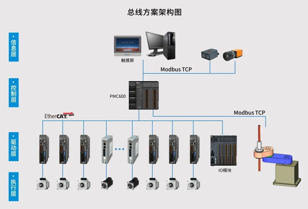 歐德神思(CODESYS)的緊密合作伙伴--雷賽智能,深入鋰電行業(yè)傾聽OCV設備對運動控制的要求,推出“控制+視覺+伺服+步進”的EtherCAT總線運動控制方案:可以實現(xiàn)核心零部件的進口替代,優(yōu)化系統(tǒng)走線,支持工藝算法定制,提升設備帶載能力,提高測試穩(wěn)定性。