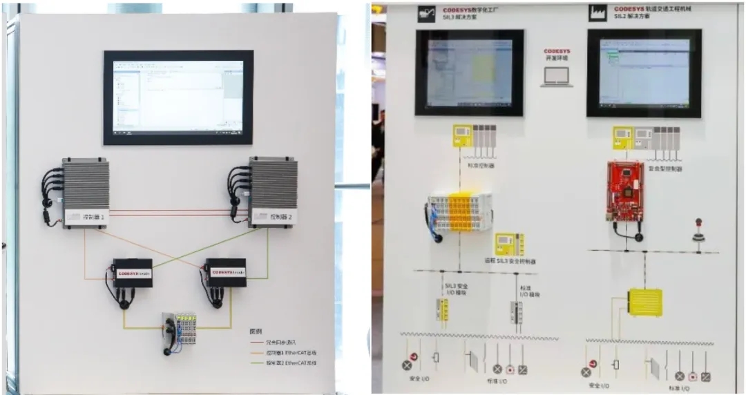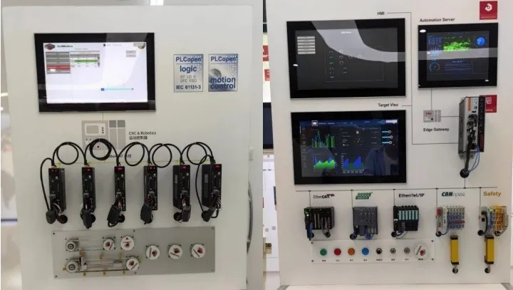 國(guó)內(nèi)自主CPU的引領(lǐng)者——龍芯中科展示了在其3A5000 CPU中運(yùn)行CODESYS SoftMotion CNC + Robotics 軟件模塊的 IPC 產(chǎn)品及行業(yè)解決方案,演示了通過在工業(yè)PC中部署運(yùn)行 CODESYS 智能自動(dòng)化編程開發(fā)平臺(tái),實(shí)現(xiàn)了使用一套 CODESYS 軟件工具包套件就可以實(shí)現(xiàn)一個(gè)完整的自動(dòng)化控制解決方案,即基于 CODESYS 軟件平臺(tái)可以實(shí)現(xiàn):邏輯控制 (PLC) 、運(yùn)動(dòng)控制 ( Motion Control )及 CNC 控制、機(jī)器人控制、人機(jī)界面 (HMI) 、基于 Web Service 的網(wǎng)絡(luò)可視化編程和遠(yuǎn)程監(jiān)控、冗余控制 (Redundancy) 和安全控制(Safety)、以及項(xiàng)目開發(fā)與工程協(xié)同管理(SVN)等多個(gè)目標(biāo)和需求。