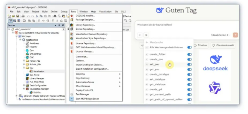 依托 Model Context Protocol(MCP)開放標(biāo)準(zhǔn),實(shí)現(xiàn) CODESYS 與主流大語言模型(LLM)的集成化數(shù)據(jù)交互,是 AI 驅(qū)動項(xiàng)目開發(fā)的核心載體。