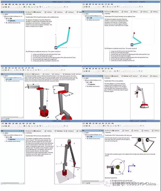 這款展品是CODESYS工程師設計并搭建用于進行CODESYS運動控制、機器人控制以及可視化展示的展示品。CODESYS將運動控制、邏輯控制合二為一,集成在IEC 61131-3標準的CODESYS編程系統(tǒng)和CODESYS實時運行系統(tǒng)中。功能包括:使用PLCOpen認證的POU庫,可實現(xiàn)單軸和多軸橫向系統(tǒng)運動;電子凸輪傳動;CNC控制;支持PLCOpen Part4標準功能塊;其運動控制編程獨立于總線和驅(qū)動器;可用于眾多標準運動控制器的驅(qū)動器,比如CIA DSP 402控制器、步進電機、變頻器、虛擬軸等;支持G代碼來規(guī)劃和編輯復雜的動作;包含豐富的函數(shù)庫,支持不同運動學的工業(yè)機器人的開發(fā),如Delta機器人、Scara機器人、六軸機器人等。